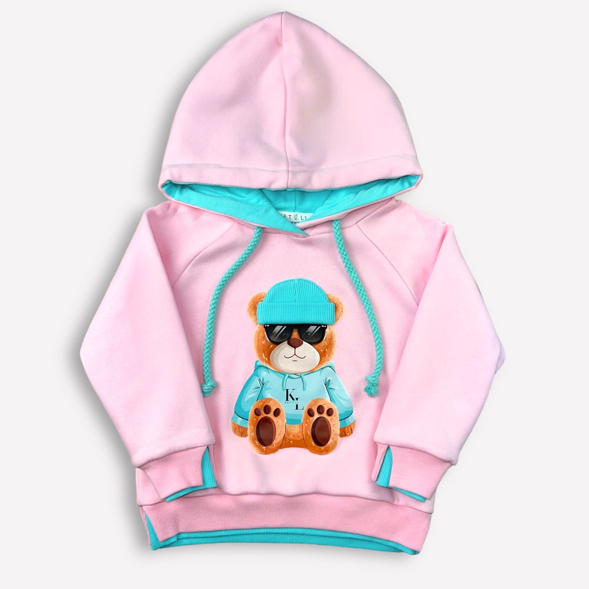 Entdecken Sie den kinderleichten Weg zu Stil und Gemütlichkeit mit unserem Mädchen-Kinderhoodie mit Kapuze, verziert mit einem entzückenden Bär-Print! In der perfekten Farbkombination aus sanftem Rosa und lebhaftem Türkis wird dieser Hoodie schnell zum Lieblingsstück im Kleiderschrank Ihrer kleinen Fashionista.